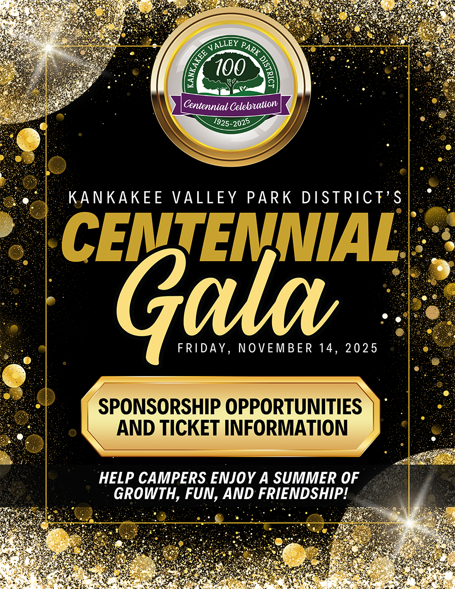We are thrilled to celebrate this centennial milestone with a Gala that honors our history and looks ahead to a bright future. Your consideration in sponsoring this event is more than an investment in a celebration—it’s a partnership that helps us continue serving our community for the next 100years. With your support, we can enhance programs, maintain our parks, and reintroduce summer camp, offering financial assistance to Kankakee residents and providing over 7,200 hours of summer camp in 2026. Together, we can ensure the Kankakee Valley Park District continues to enrich lives for generations to come.
